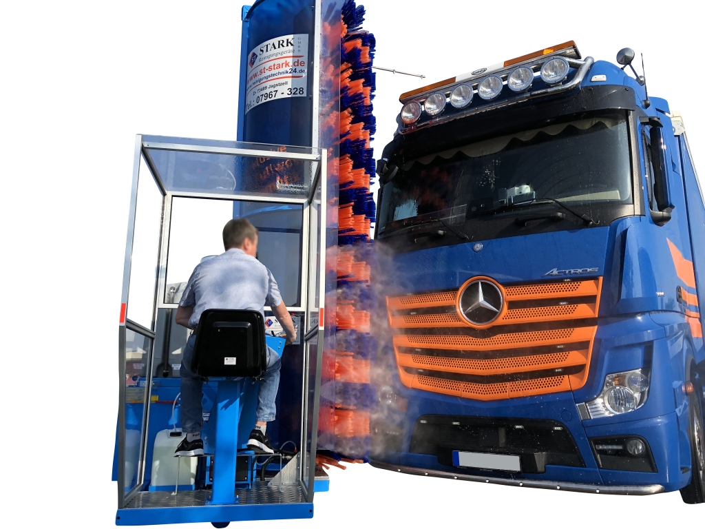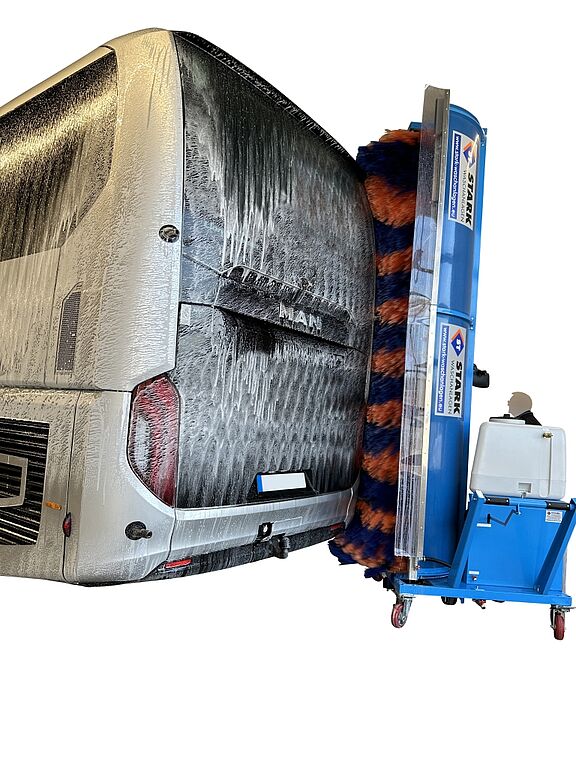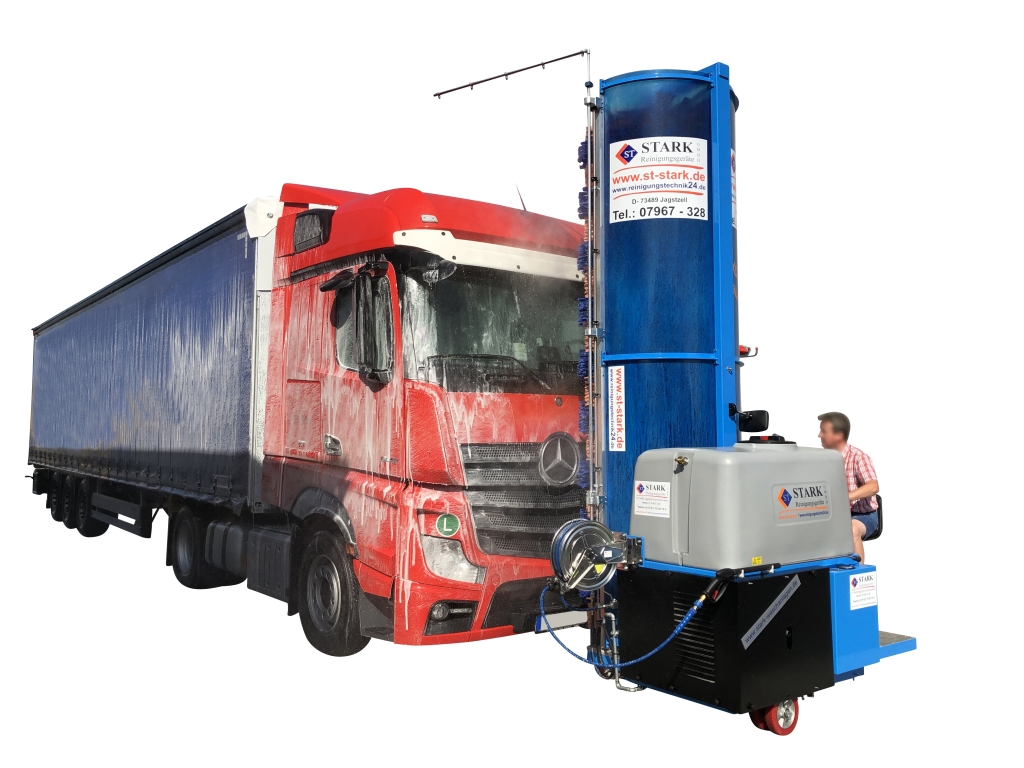 Mobile Bürstenwaschanlagen von STARK sorgen für eine schnelle und kostengünstige Nutzfahrzeugwäsche von Bussen, Lkw, Planen-, Tank- und Silofahrzeugen: einfach und unkompliziert, gründlich und ohne ausufernde Investitionen!