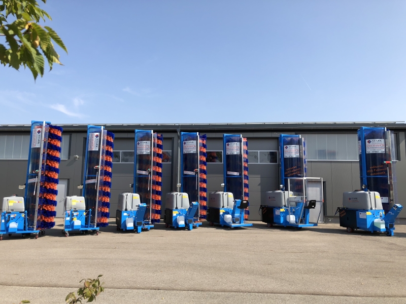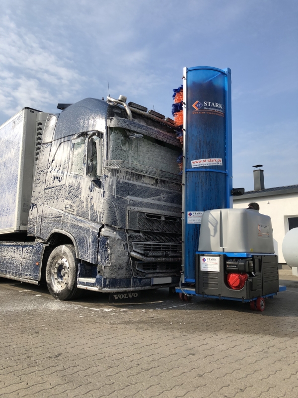 Gerade große und schwergängige Nutzfahrzeuge, aber auch ganze Flotten von Omnibussen und Transportfahrzeugen lassen sich nicht gerade einfach, schnell und preiswert reinigen – eine Handwäsche ist umständlich und aufwendig. Vollautomatische stationäre Waschanlagen für Nutzfahrzeuge sind meist nicht gerade um die Ecke erreichbar. Wer seine Nutzfahrzeuge dennoch regelmäßig ohne lange Anfahrtswege kostengünstig und umfassend säubern möchte, sollte daher eine mobile Nutzfahrzeugwaschanlage von STARK kaufen. Dank unserer fahrbaren, rotierenden Waschbürsten in der Ausführung Akku/Silent Battery-Dieselmotor mit Wassertank profitieren Ihre Busse, Landmaschinen und Transporter von folgenden Vorteilen: