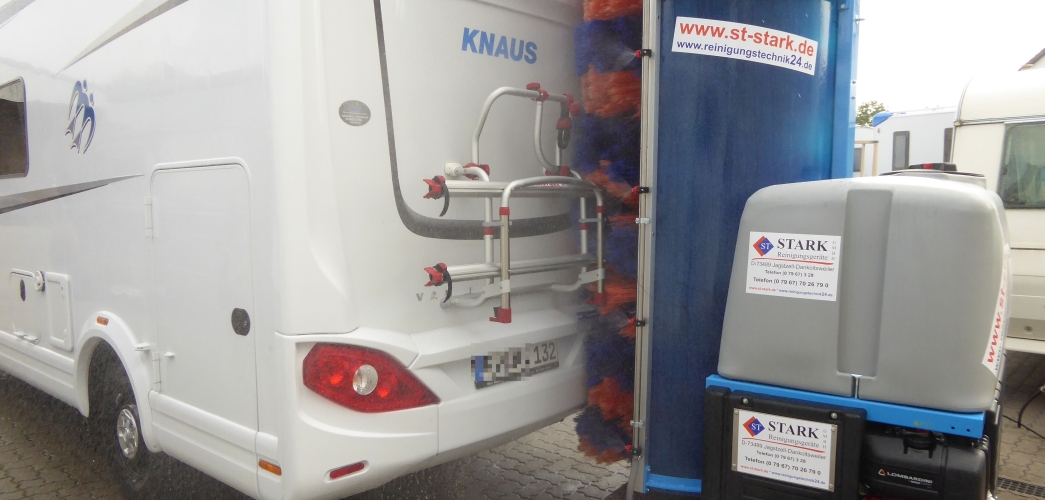 Die Anforderungen bei der Reinigung von Wohnmobilen sind vielfältig und nicht zu unterschätzen. Bauen Sie auch hier auf die Erfahrung und die Flexibilität der STARK Reinigungsgeräte GmbH und stellen Sie sich mit unserer Hilfe eine Anlage zusammen, die Ihren individuellen Bedürfnissen optimal entspricht. Wenn Sie fahrbare Bürstenwaschanlagen speziell als Wohnmobil-Waschanlagen ausstatten und nutzen möchten, werden Sie von uns umfassend beraten und binnen kurzer Zeit genau mit den Reinigungsgeräten beliefert, die Sie zum Einsatz im Betrieb, am Servicepoint für Ihren Mietpark und nicht zuletzt auch für Ihre Kunden benötigen.