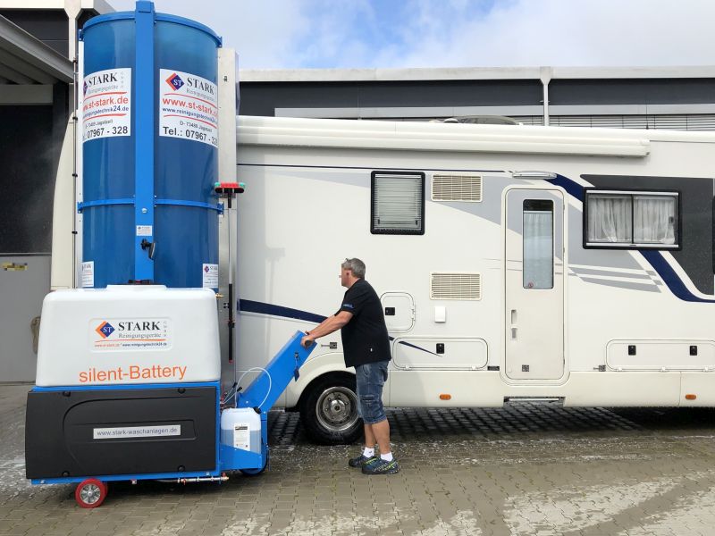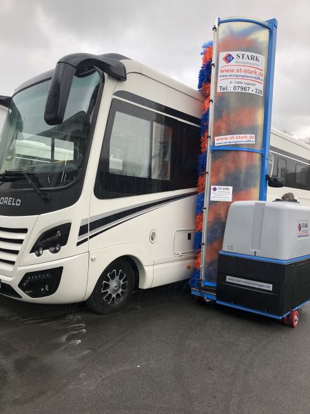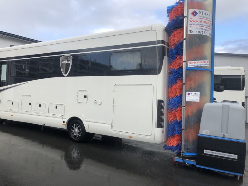 Wenn wir eine spezielle Wohnwagen-Waschanlage für Sie bauen sollen, oder Sie eine Wohnmobil Waschanlage kaufen möchten, so haben Sie bei STARK die Auswahl aus einem kompletten Angebot der unterschiedlichsten Geräte respektive Einzelkomponenten. Als Ihr zuverlässiger Partner zeigen wir Ihnen alle Möglichkeiten auf, die auf dem Markt realisiert werden können, und finden für Ihre mobile Bürstenwaschanlage mit Sicherheit die richtige Lösung. Diese wird von Ihnen in der Regel mithilfe eines Akkus oder Dieselantriebs inklusive Wassertank um das zu reinigende Fahrzeug herumbewegt. STARK bietet Ihnen eine große Auswahl solcher selbstfahrenden Premium-Wohnmobil-Waschanlagen – doch baut Ihnen auf Wunsch auch Ihr individuelles Exemplar.